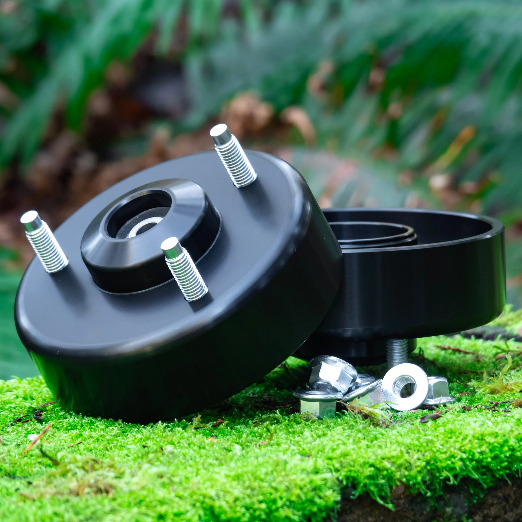 The kit includes our top hats, shock eyelets, bump stop spacers, and rear spring spacers, and all the hardware needed for installation as well as the tool to install bushings into the shock eyelets. All our parts are designed, tested, and made in the USA.