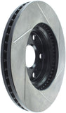 StopTech Slotted Sport Rotors are 1-piece direct replacement brake discs for factory brake systems and stock calipers that look great behind your wheels – and offer significantly improved braking performance. The unique slotting aids with heat and brake dust dispersal, prevents glazing of the pads, adds bite and improves wet and dry braking performance. Built to last, the black e-coating provides protection from corrosion and the high carbon metallurgy (in most applications) offers quieter operation, better crack resistance and increased performance.