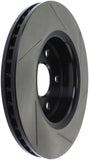 StopTech Slotted Sport Rotors are 1-piece direct replacement brake discs for factory brake systems and stock calipers that look great behind your wheels – and offer significantly improved braking performance. The unique slotting aids with heat and brake dust dispersal, prevents glazing of the pads, adds bite and improves wet and dry braking performance. Built to last, the black e-coating provides protection from corrosion and the high carbon metallurgy (in most applications) offers quieter operation, better crack resistance and increased performance.