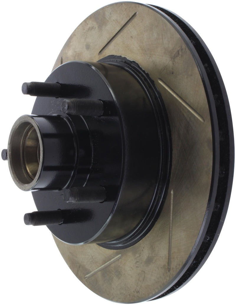 StopTech Slotted Sport Rotors are 1-piece direct replacement brake discs for factory brake systems and stock calipers that look great behind your wheels – and offer significantly improved braking performance. The unique slotting aids with heat and brake dust dispersal, prevents glazing of the pads, adds bite and improves wet and dry braking performance. Built to last, the black e-coating provides protection from corrosion and the high carbon metallurgy (in most applications) offers quieter operation, better crack resistance and increased performance.