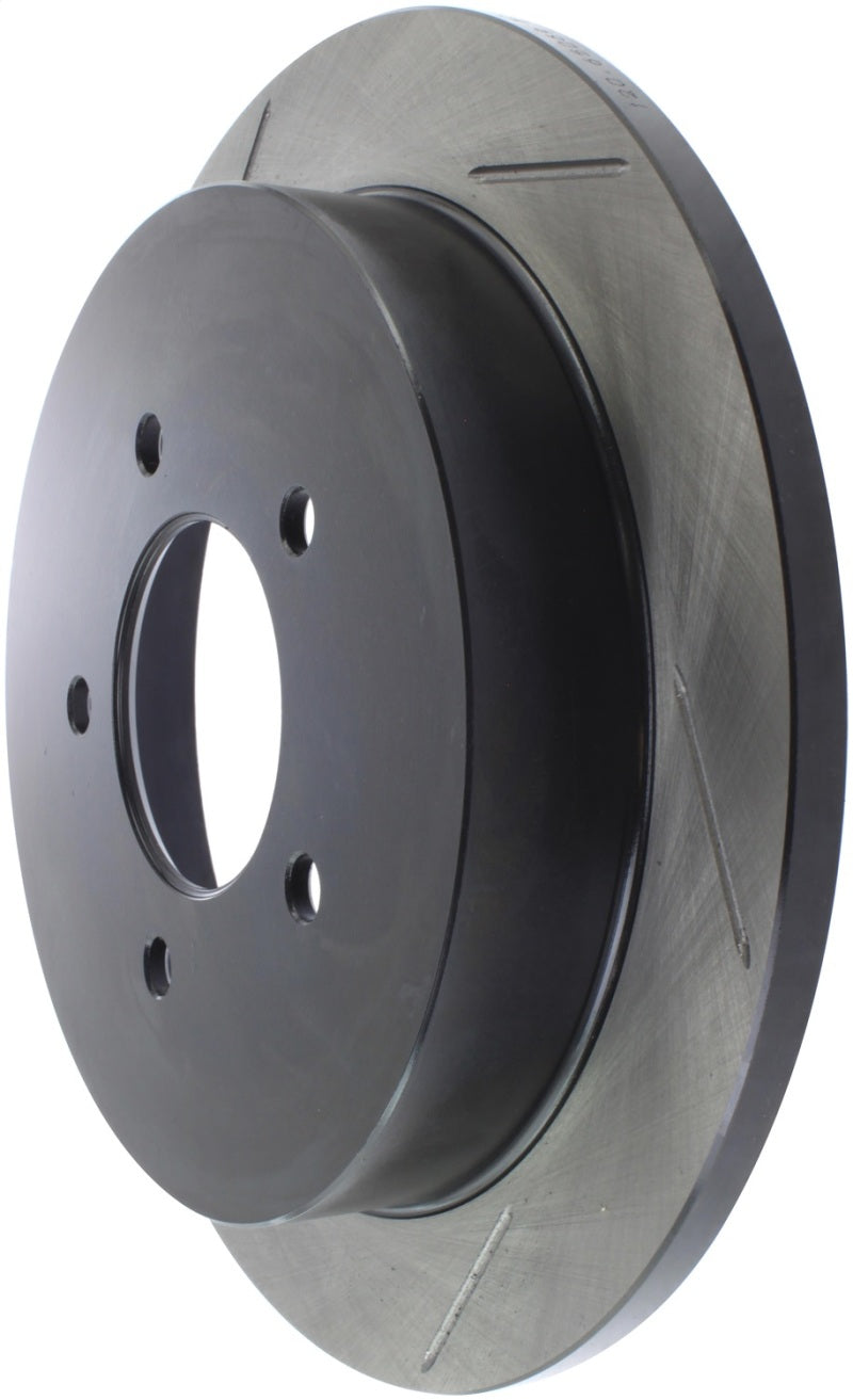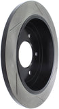 StopTech Slotted Sport Rotors are 1-piece direct replacement brake discs for factory brake systems and stock calipers that look great behind your wheels – and offer significantly improved braking performance. The unique slotting aids with heat and brake dust dispersal, prevents glazing of the pads, adds bite and improves wet and dry braking performance. Built to last, the black e-coating provides protection from corrosion and the high carbon metallurgy (in most applications) offers quieter operation, better crack resistance and increased performance.