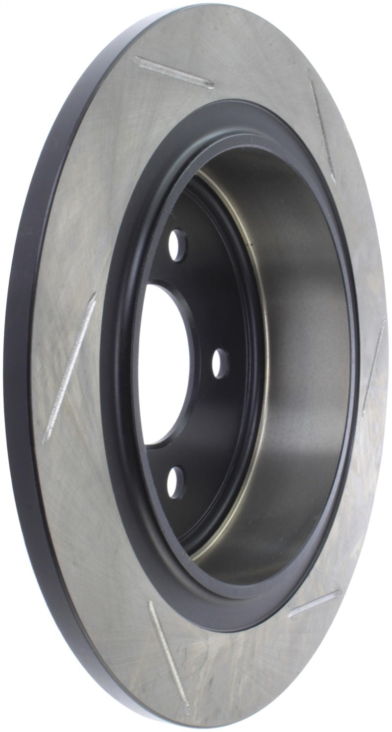 StopTech Slotted Sport Rotors are 1-piece direct replacement brake discs for factory brake systems and stock calipers that look great behind your wheels – and offer significantly improved braking performance. The unique slotting aids with heat and brake dust dispersal, prevents glazing of the pads, adds bite and improves wet and dry braking performance. Built to last, the black e-coating provides protection from corrosion and the high carbon metallurgy (in most applications) offers quieter operation, better crack resistance and increased performance.
