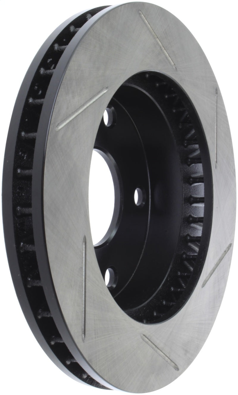 StopTech Slotted Sport Rotors are 1-piece direct replacement brake discs for factory brake systems and stock calipers that look great behind your wheels – and offer significantly improved braking performance. The unique slotting aids with heat and brake dust dispersal, prevents glazing of the pads, adds bite and improves wet and dry braking performance. Built to last, the black e-coating provides protection from corrosion and the high carbon metallurgy (in most applications) offers quieter operation, better crack resistance and increased performance.