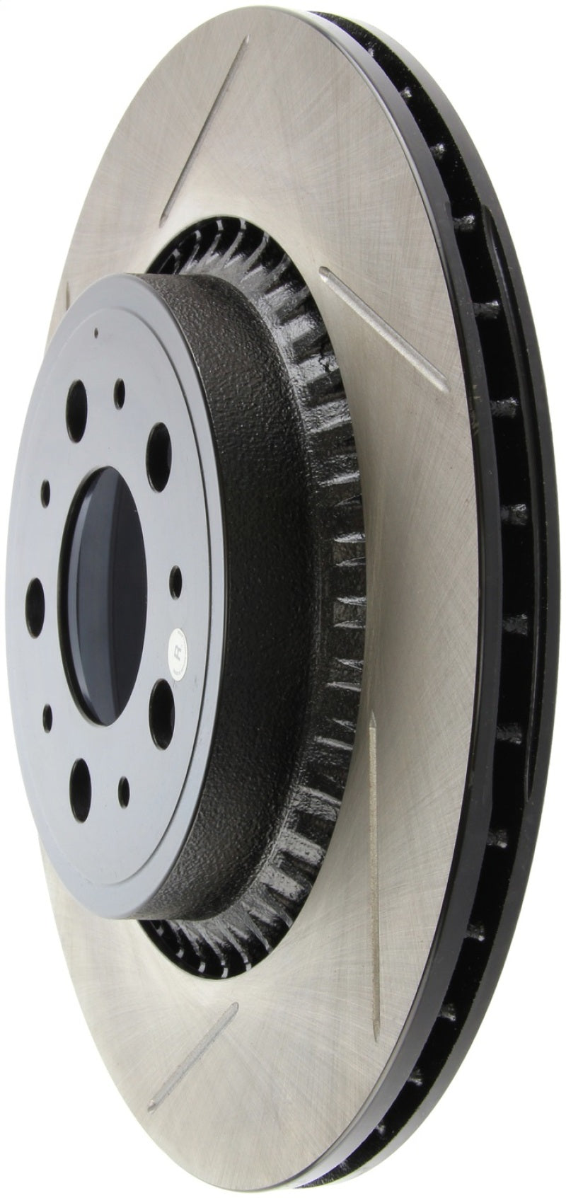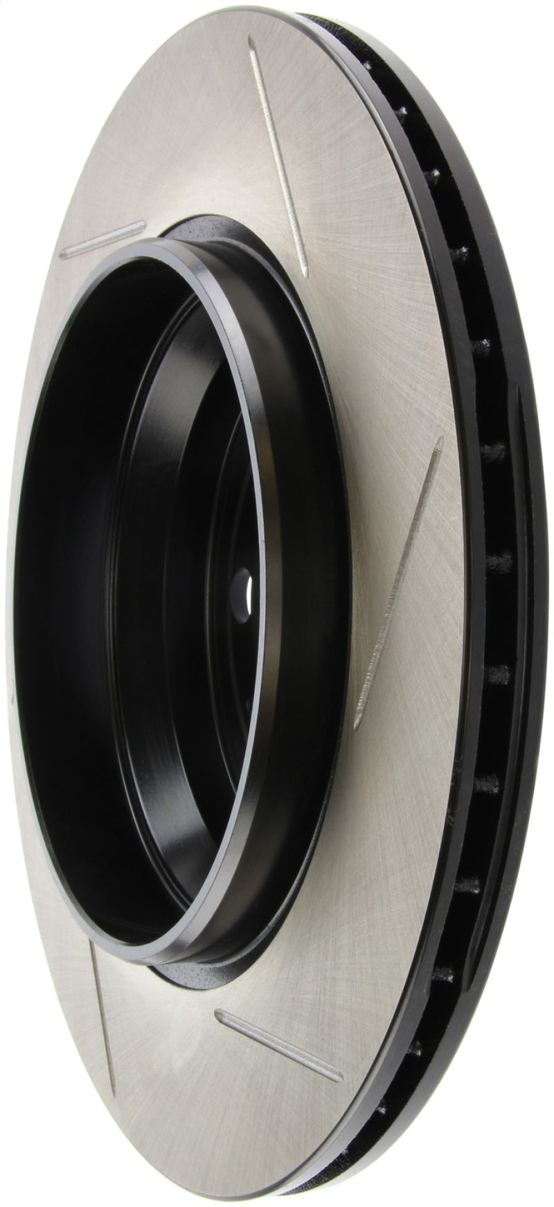 StopTech Slotted Sport Rotors are 1-piece direct replacement brake discs for factory brake systems and stock calipers that look great behind your wheels – and offer significantly improved braking performance. The unique slotting aids with heat and brake dust dispersal, prevents glazing of the pads, adds bite and improves wet and dry braking performance. Built to last, the black e-coating provides protection from corrosion and the high carbon metallurgy (in most applications) offers quieter operation, better crack resistance and increased performance.