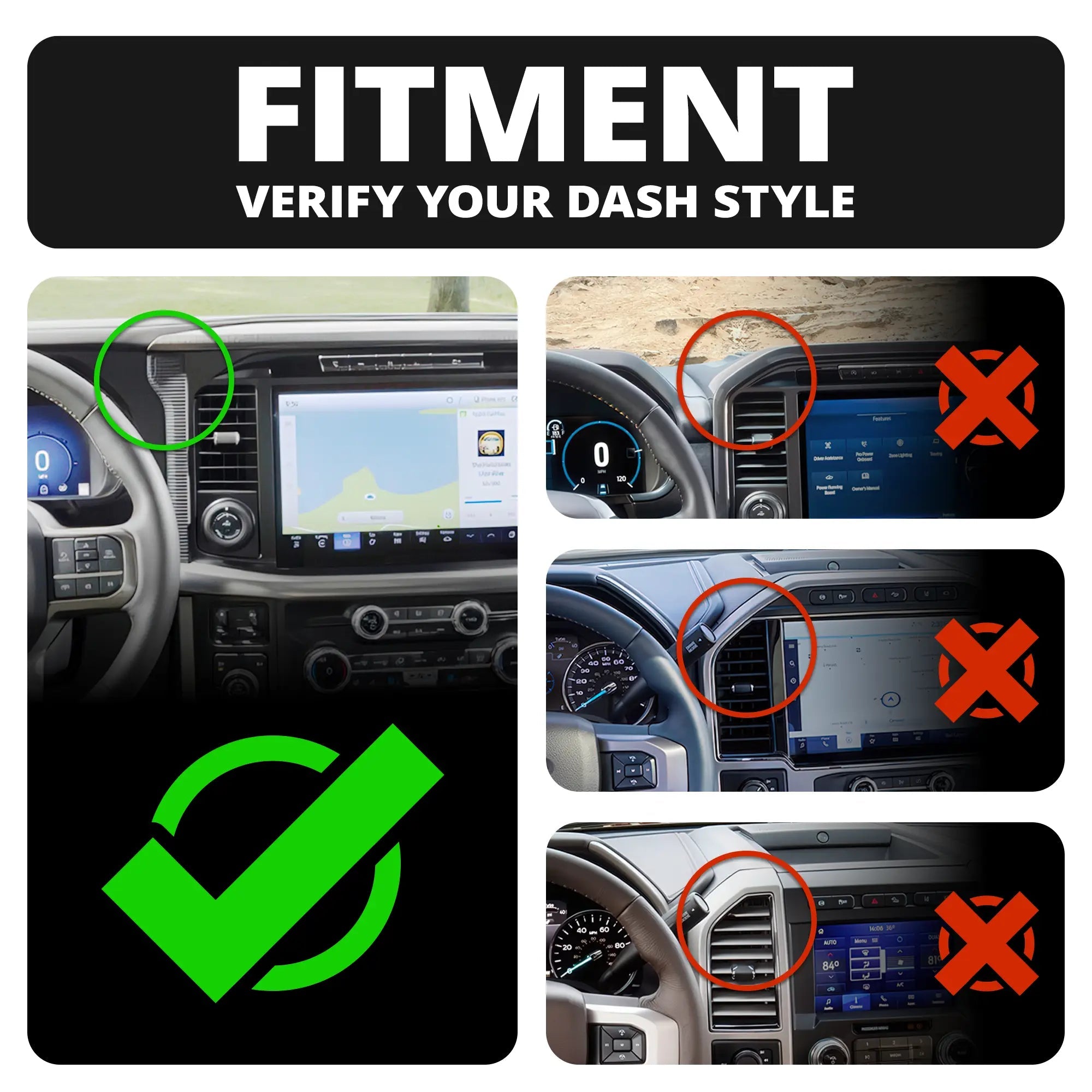 Engineered to interface perfectly with your F-150's dashboard, our bracket fully replaces your factory OEM trim bezel and securely mounts using two existing radio bolts along with two additional rear screws for enhanced stability. Should you decide to revert to the factory setup, your OEM bezel will completely conceal the drilled holes, maintaining a clean, unmodified appearance.