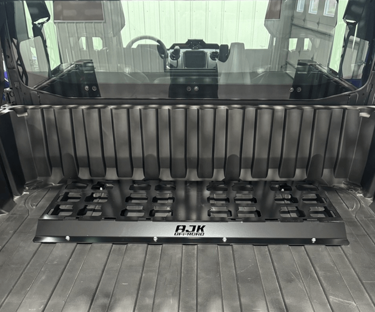 Our Milwaukee Packout Mount is the perfect storage solution for your Polaris Ranger 1500XD. This is our front mount, designed to sit near the front of your bed close to the cab. It installs using existing mounting holes along with four self-drilling screws. Installation is simple—just remove two bed bolts and replace them with the supplied bolts, then secure the rear of the mount with the four provided self-drilling screws. We CNC laser cut each mount in-house from 10-gauge P.O. steel and finish it with a black powder coat.